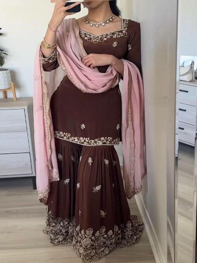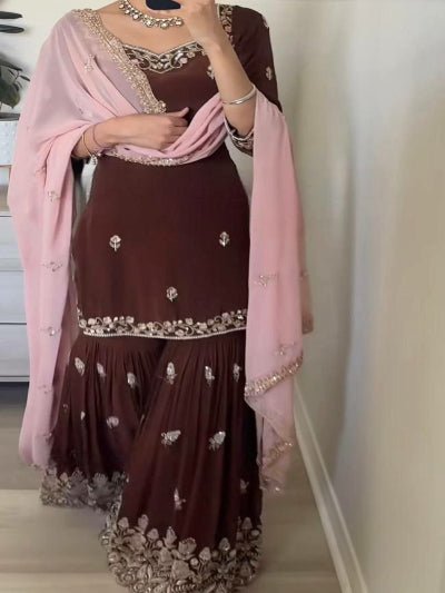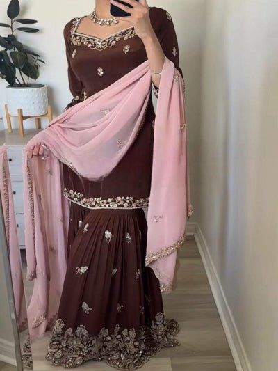 Soft Mauve Brown Georgette Embroidery Anarkali Set