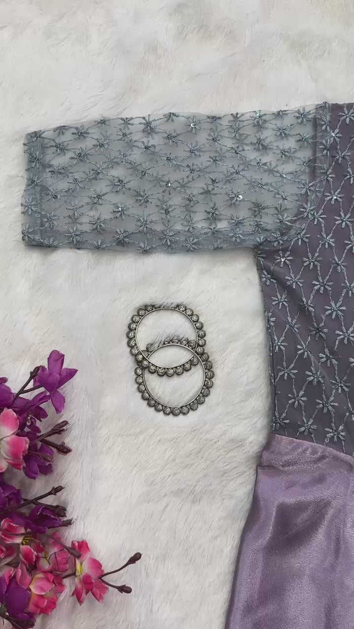 Lilac 10 Second Saree Satin Ethnic Gown Stitched Blouse - BONYHUBSAREE