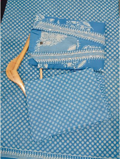 Blue Cotton Anarkali Kurti, Pant and Dupatta Set of 3