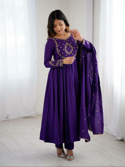 Royal Purple Chanderi Silk Handwork Anarkali Suit