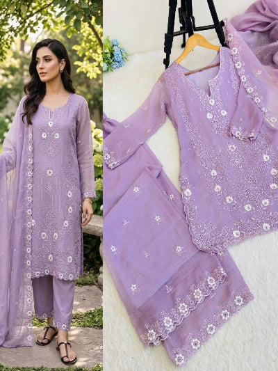 Pastel Lavender Georgette Embroidery Gharara Suit Set