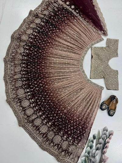 Gold Brown Ombre Georgette Embroidery Lehenga Choli Set