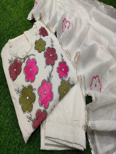 White Designer Gota Lace Embroidery Cotton Straight Suit Set - BONYHUBSALWAR KAMEEZ