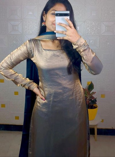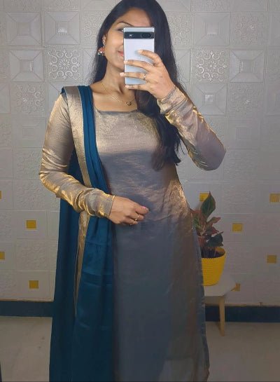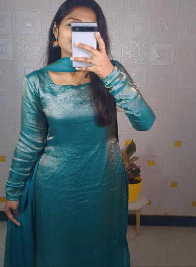 Sea Blue Fendi Silk Traditional Salwar Suit Set