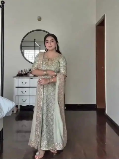 Pastel Green Sequin Moti Embroidery Work Sharara Suit