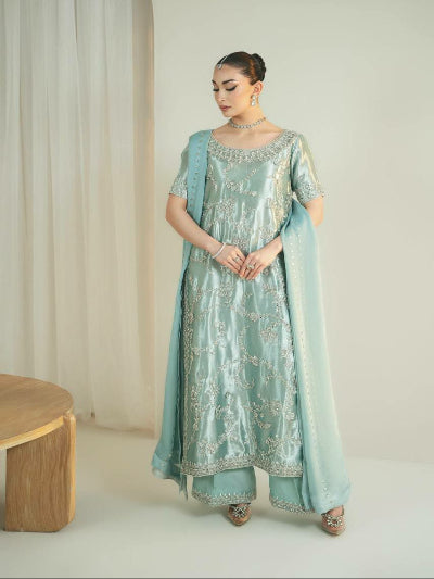 Teal Blue Gold Embroidery Gharara Suit Set