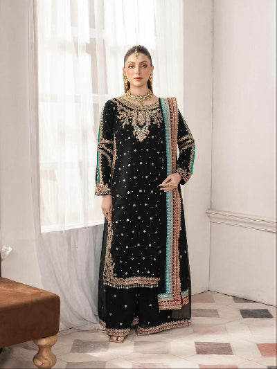 Black Tissue Silk Gold Rich Embroidery Palazzo Suit