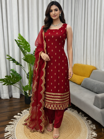 Suhana Red Gold Embroidery Work Anarkali Suit