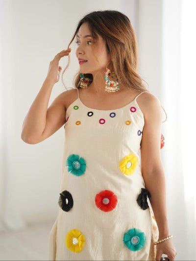 ✨ A lightweight and stylish Khadi Cotton set with elegant mirror khatli detailing — perfect for festive and casual wear.