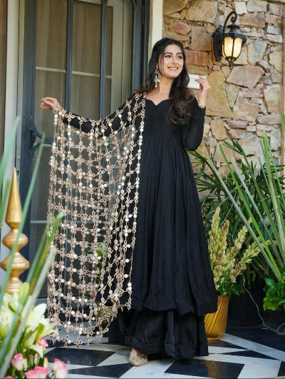 Classic Black Anarkali Suit with Gold Mirror Work Dupatta