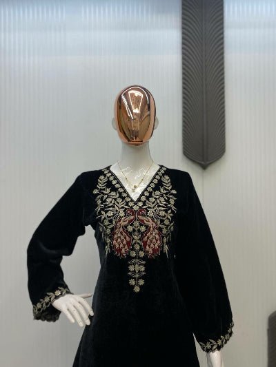 Black Velvet Stylish Embroidered Kurti Pant Set Of 2