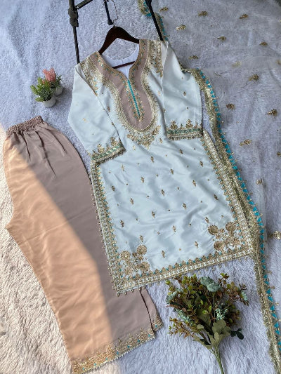 READYMADE FULLY STITCHED STRAIGHT SUIT SET( SET OF 3 )