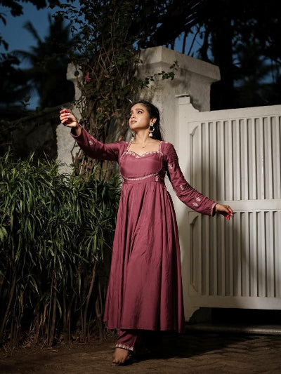Dusty Pink Embroidery Work Anarkali Suit Set
