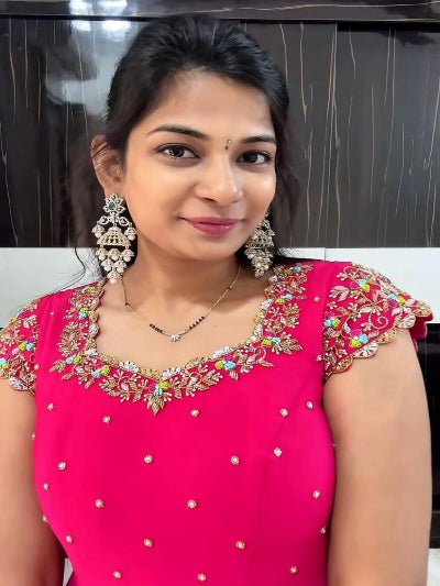 Magenta Pink Handwork Silk Gown With Dupatta Set Of 2