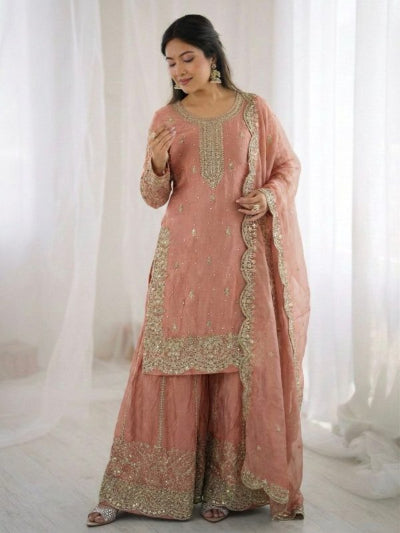 Pastel Blush Pink Gold Georgette Sharara Suit
