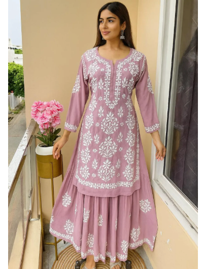 Pastel Lavender Georgette Embroidery Gharara Suit Set
