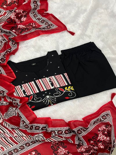 Beautiful 3-Piece Cotton Kurti Pant Dupatta Set