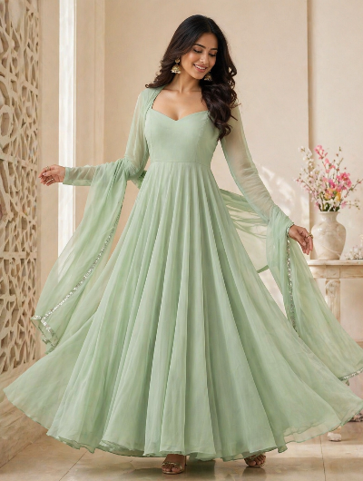 Pastel Mint Green Georgette Anarkali Suit Set