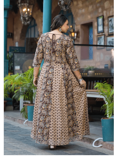 Plus size Anarkali Beige Maroon Kurti Dupatta Set of 2 - BONYHUBSALWAR KAMEEZ