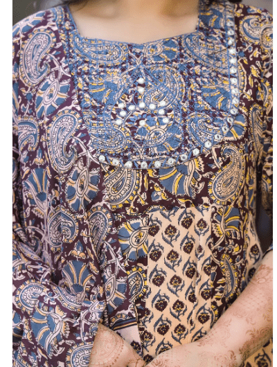 Plus size Anarkali Beige Maroon Kurti Dupatta Set of 2