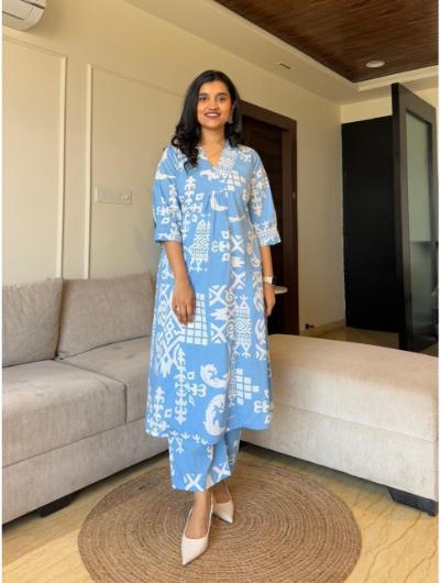- Blue Co-ord Set with Kurta Pant (Set of 2)