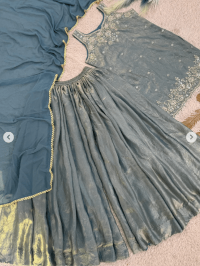 Silver Tissue Silk Embroidery Sharara Suit