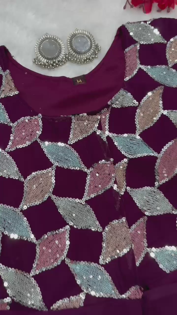 Saree Gown :Faux Georgette with Embroidery 4 Sequence Work & Border Aarka Work